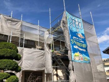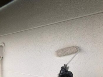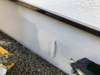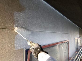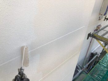 外壁上塗り1回目 ベージュ系から白系へと塗り替えられていきました