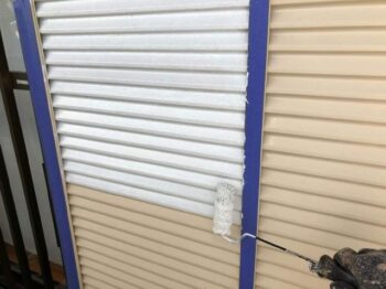 雨戸上塗り2回目 ベージュから外壁の色にあわせた色で仕上げました