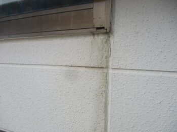 外壁 サッシ角部分よりひび割れ、雨染みの跡がありました