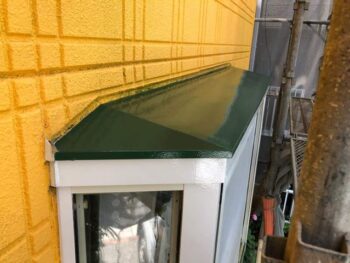 出窓上塗り1回目 こちらは屋根と同じ濃い緑色で仕上げました