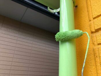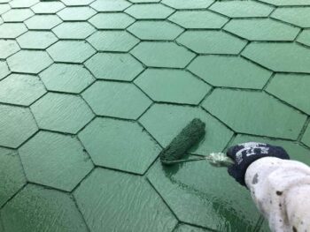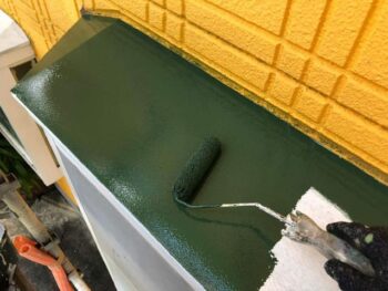 上塗り1回目 施工前よりも濃い緑色で塗装されていきます