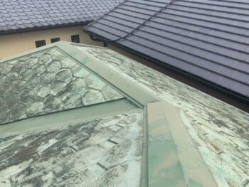 全景 黒く汚れ、塗装もはがれてしまっていた屋根が、一転ピカピカの緑に仕上げることができました