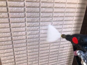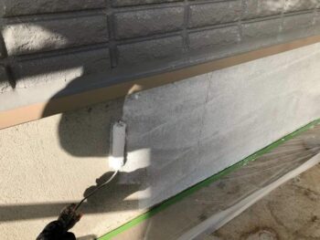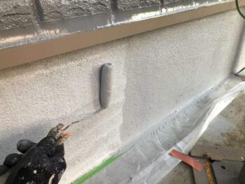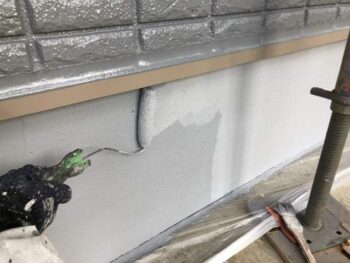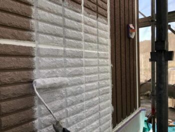 外壁下塗り2回目 凹凸があり、斑なく仕上げるため、その後の工程は吹付にしました
