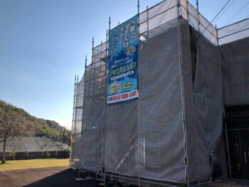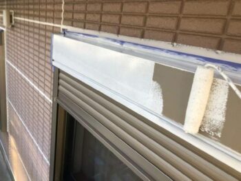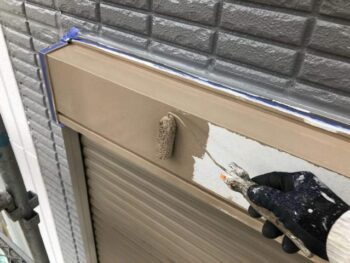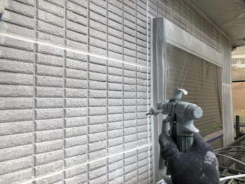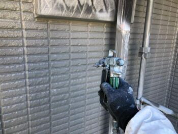 外壁上塗り1回目 グレーをメインに塗装していきました