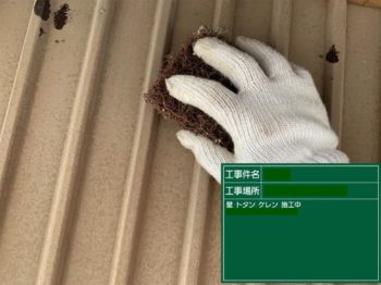 外壁(トタン面) こちらでは顕著な汚れはそこまで目立ちにくかったものの、色が薄くなっていました。
