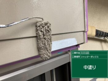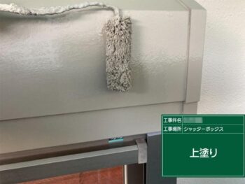 シャッターボックス中塗り 現状色と同じ色で仕上げました