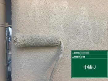 外壁中塗り つや消しの無機塗料(ランデックスコート)を使用します