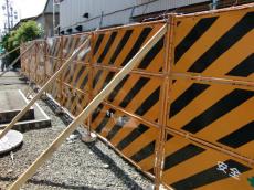 | 隣地が変電所なので、養生対策を徹底させます。 | 仮設のバリケードの下は、動物なども通過できないようにします。 | クラック箇所にVカット処理をして、プライマーを塗布します。 |