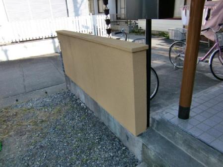 | 塗装の外壁です。近くで見ても綺麗に塗装されているのが良く分かります。 | 門塀の塗装後です。塗装前と比べて、見違えるように変わっています。 | 土台部分にも塗装を施しました。 | ||