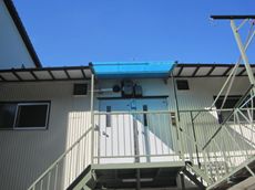 | 施工前のお写真になります。年期の入った建物で、屋根も外壁も痛みが目立ちました。 | 屋根の写真になります。サビと汚れが目で見てわかります。こちらを補修していきます。 |