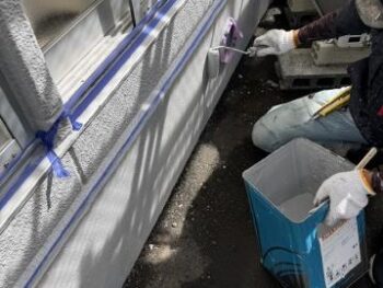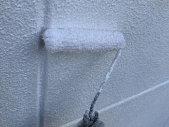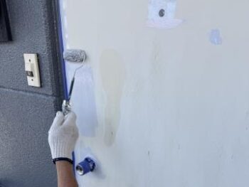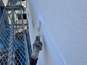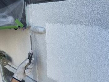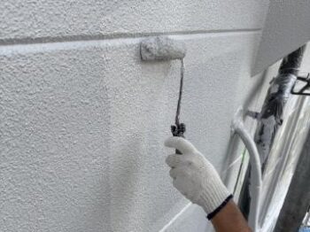 外壁上塗り1回目 1F部分は白系で塗装されていきます