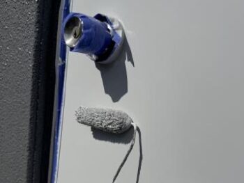 玄関扉(2F)上塗り 外壁と対比になるようにしました