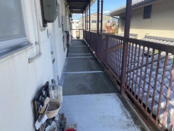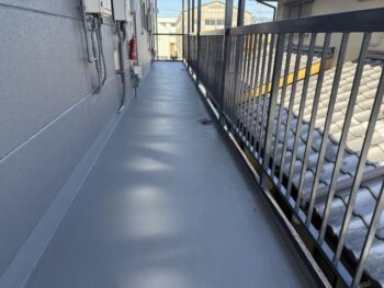 通路床上塗り2回目 傷んでいた状態からきれいな状態へと仕上げることができました