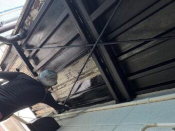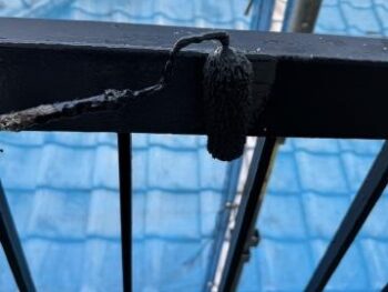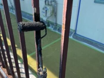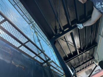 デッキ鉄部上塗り 濃い色で塗装することで錆が目立ちにくくなるという長所があります