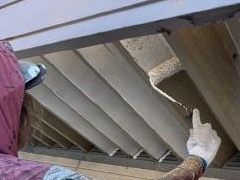 軒天上裏下塗り 塗装することで見栄えを良くする試みが見られます