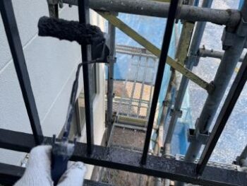 手すり下塗り 色褪せや錆などで劣化しているため、錆に強くします