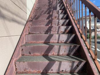 階段鉄部 屋外のため、様々な劣化要因により錆などが発生しておりました