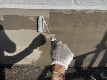 通路床下塗り プライマーを塗布し、塗装を馴染ませます