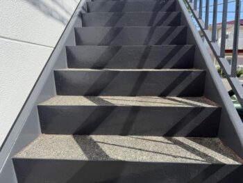 階段鉄部 錆などで劣化していた階段は重厚感を感じる仕上がりになっていました