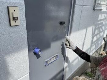 玄関扉(1F)上塗り こちらは2F外壁の色と同じ濃いグレー系になりました