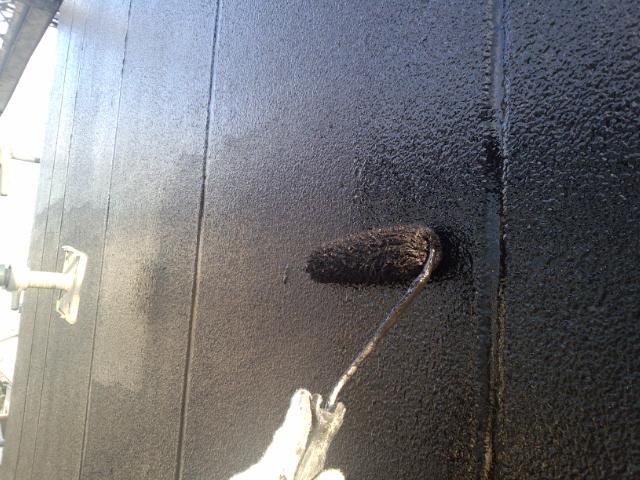 | トタン面のケレン作業を行います。 | トタン面の錆止めです。 | トタン面の中塗りです。 |