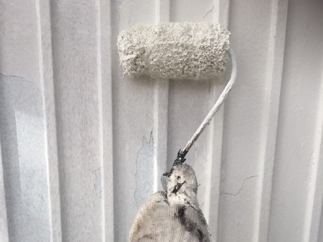 | 錆だけでなく、塗装のはがれもあったため、2回錆止めを塗布しました。 | 錆対策を完全にしてから、中塗りを塗布します。 | 外壁の最後は上塗りを行い、合計4回塗装という仕上がりとなりました。 |