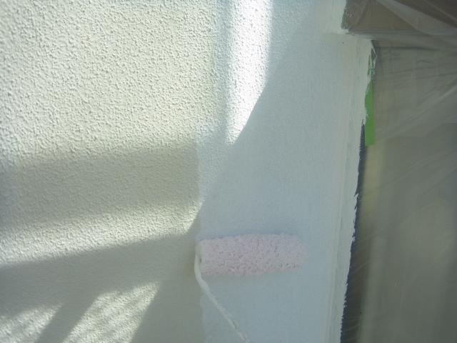 | 屋根の下塗りに入ります。 | 外壁の下塗りです。 | 外壁の中塗りです。 |