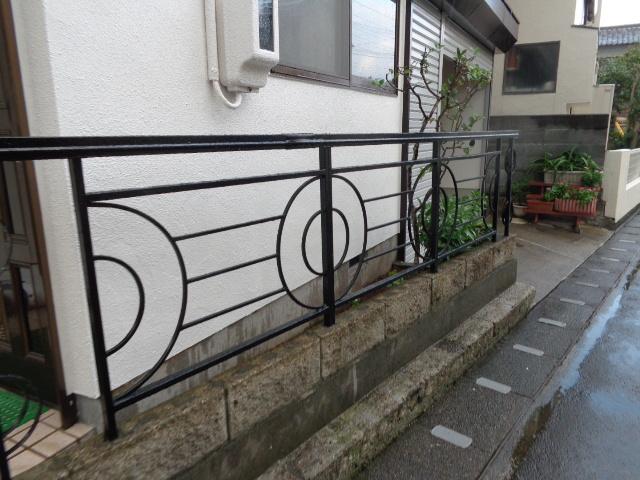 | 樋受けの金具にもエポキシ錆止め塗料を塗布します。 | 錆止め完了後の雨戸、戸袋です。 | 柵にも錆止めを行いました。 |