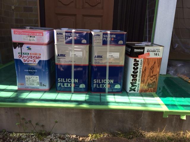 | 外壁(リシン)にはこちらの塗料を使用します。 | まずは下塗りからです。 | 中塗りから光触媒塗料(ECO-HG)を使用します。 |
