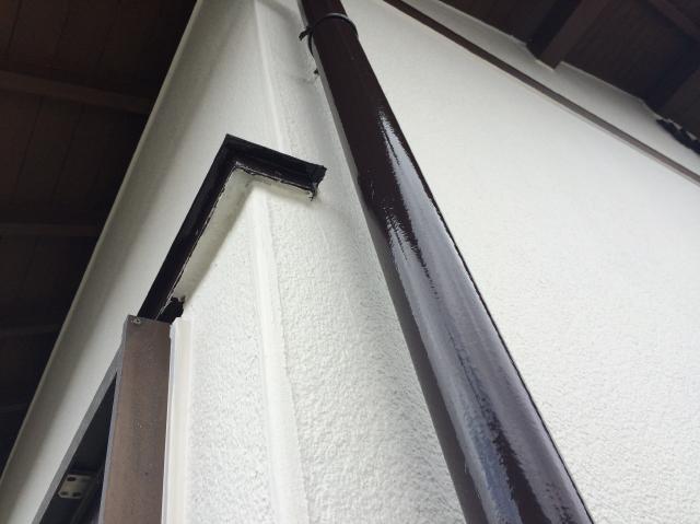 | 外壁(リシン)の上塗りです。 | 樋の1回目の塗装です。 | 2回目の樋の塗装です。 |