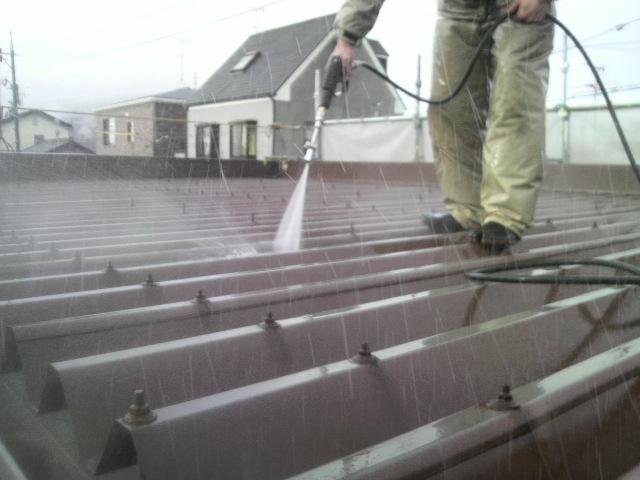 | 足場が架かりました。 | 屋根の高圧洗浄を行います。 | 続いて外壁の高圧洗浄を行いました。 |