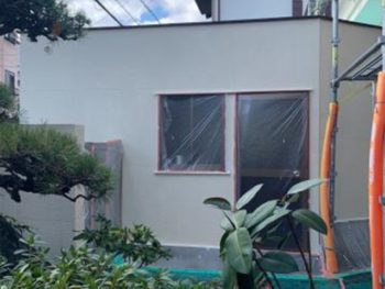 外壁にガイナ(22-85C)を使用しました。(写真は外壁上塗り1回目後)