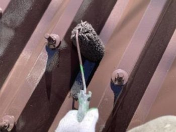 折半屋根には専用の錆止め(サーモアイプライマー)を塗布します。