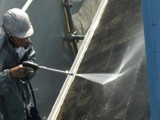 | 足場を組み立てて、施工開始です。 | 塗装する箇所を高圧洗浄で汚れを落とします。 | 高圧洗浄が終わりました。 | ||