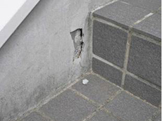 | シーリングもこのまま放置しておくと溝ができそうです。 | 共用部の損傷も目立ちます。 | 鉄骨部も汚れているのが分かります。 | ||