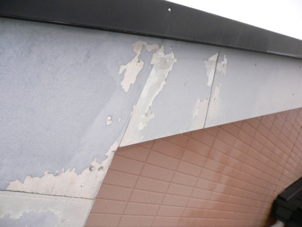 | 軒天ボードの腐食部分を撤去していきます。 | 鉄骨の錆止めをしていきます。 |