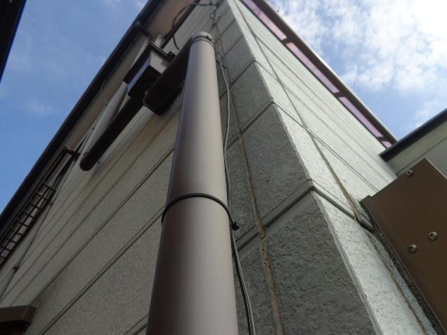 | 基礎の状態です。ところどころ傷んでいました。 | 戸袋は色褪せていました。 | 樋も行います。こちらも色褪せていました。 |