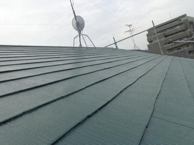 | 工事が完了した後もきれいな状態が続いていました。 | 近くで見るとほとんど汚れは見られません。 | 屋根は緑色に仕上げました。 |