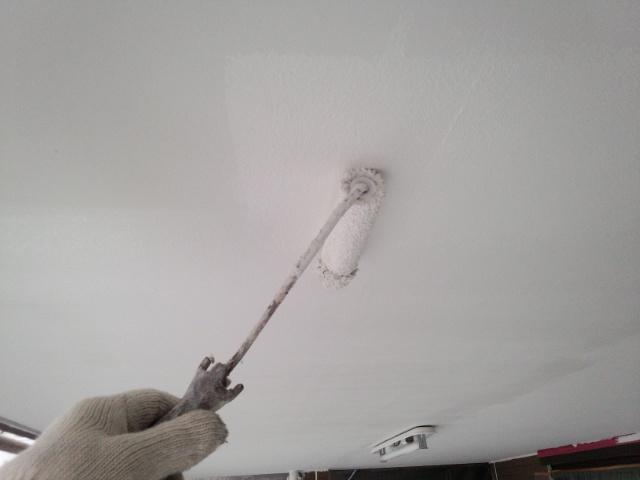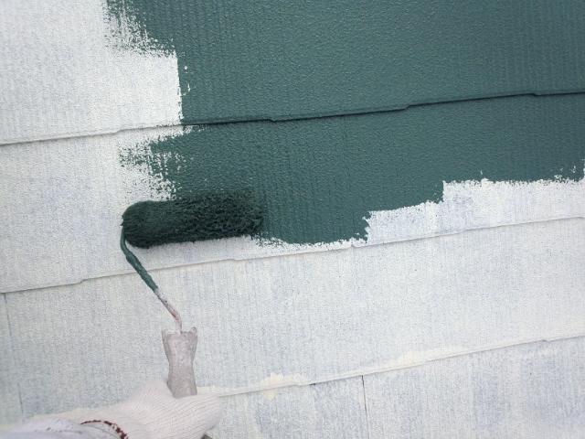 | タスペーサーを挿入し、次の上塗りを行います。 | 2回目の上塗りを行い、屋根の塗装は完了です。 | 軒天の塗装を行います。 |