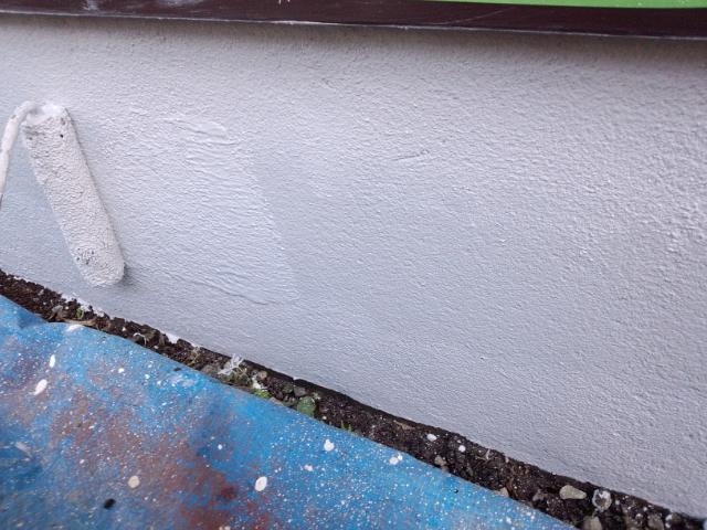 | 外壁の上塗りです。 | 基礎の下塗りです。 | 亀裂が発生していたので、補修してから中塗りを行います。 |
