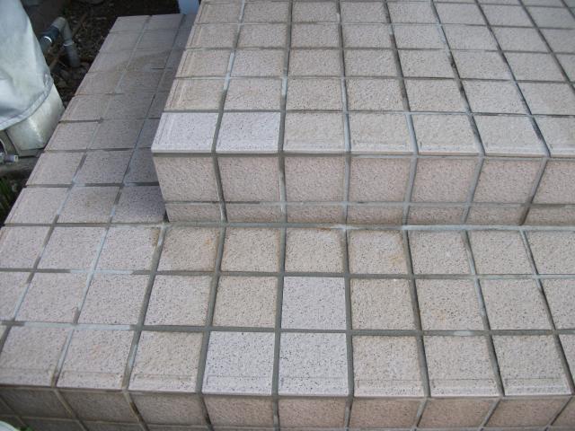 | オーバーハング部分の板金工事が完了しました。 | 玄関のタイルが一部欠損していました。 | 玄関タイルの欠損部の補修はこれで完了です。 |