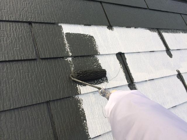 | タスペーサーを挿入します。 | 屋根の上塗り1回目です。 | 屋根の上塗り2回目です。 |