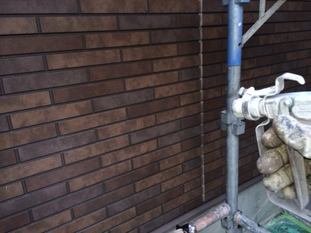 | 外壁の高圧洗浄です。きれいに見えるようでも意外と汚れがたまっている場合が多いです。 | 傷んでしまったコーキングを打ち替えるため、シーリング工事を行います。 | シーリング工事完了後の状態です。これで雨漏りもしにくくなります。 |